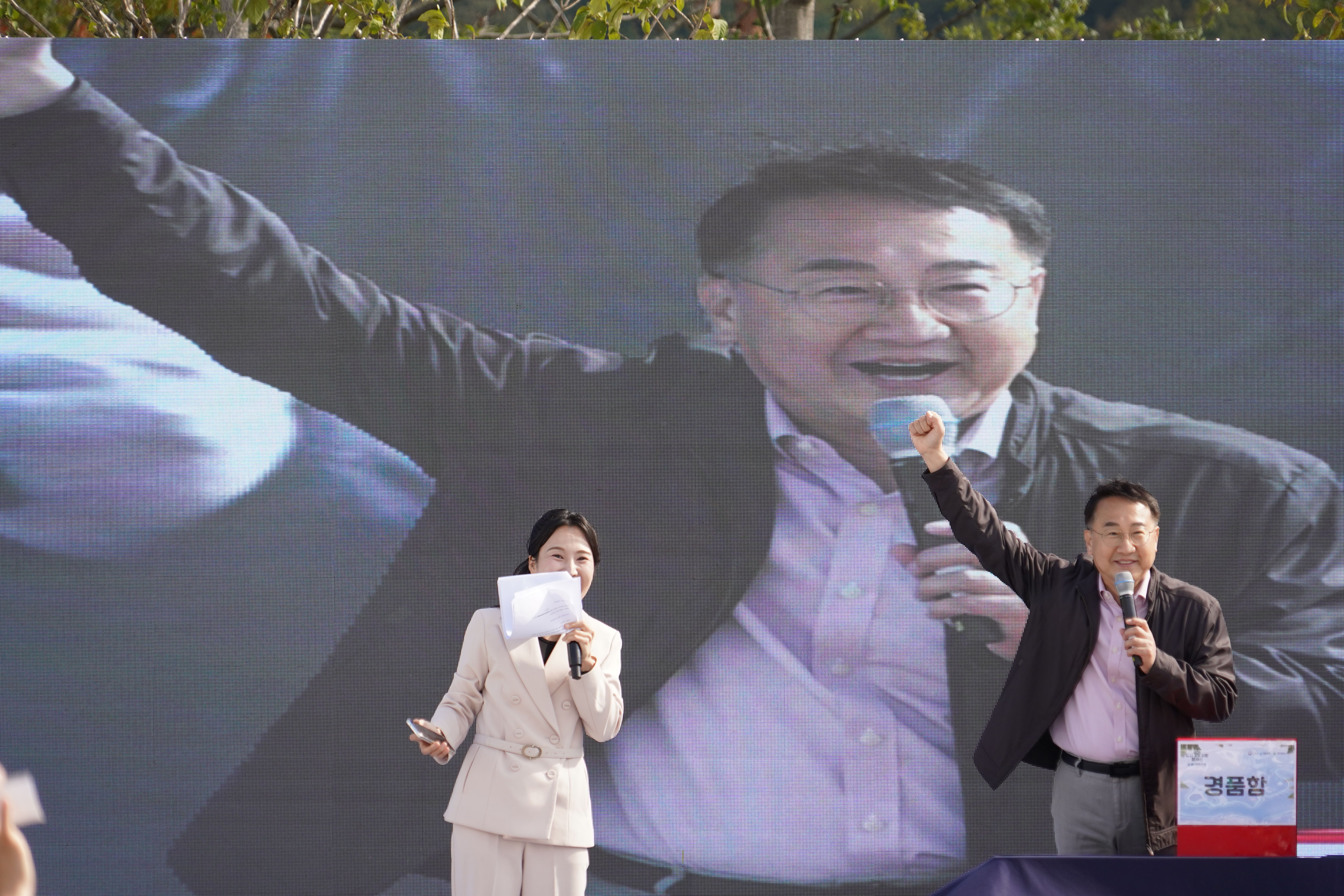 김인호 산림청장과 손동영 서울경제신문 대표이사가 2025년 11월 1일 대전시 갑천생태호수공원에서 열린 '2025 도시숲사랑 캠페인 달팽이마라톤'에서 출발하기에 앞서 참가자들과 기념촬영을 하고 있다.