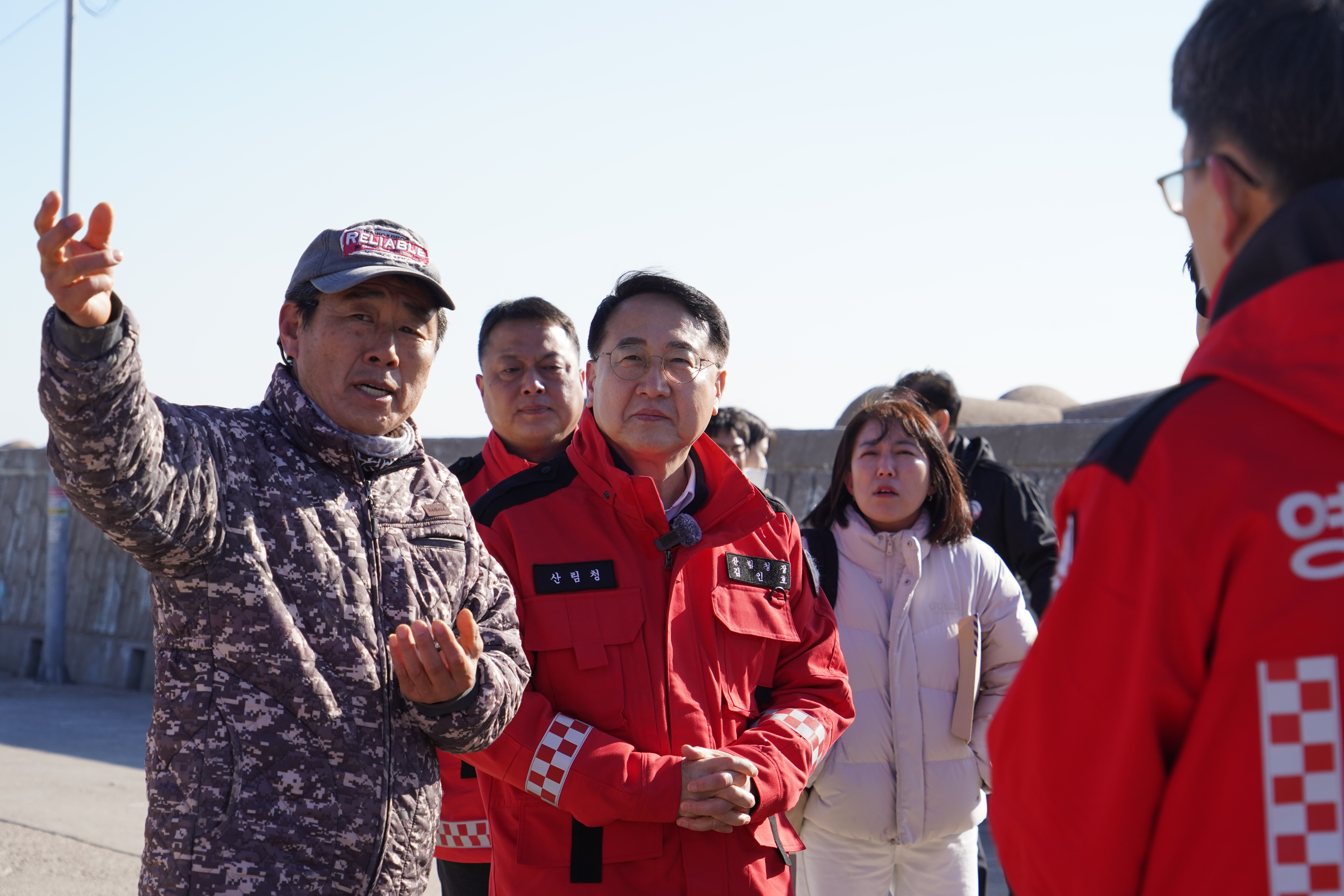 김인호 산림청장이 2026년 1월 29일 경북 영덕군 노물리 산불피해지 현장을 찾아 복구상황을 점검하고 있다.