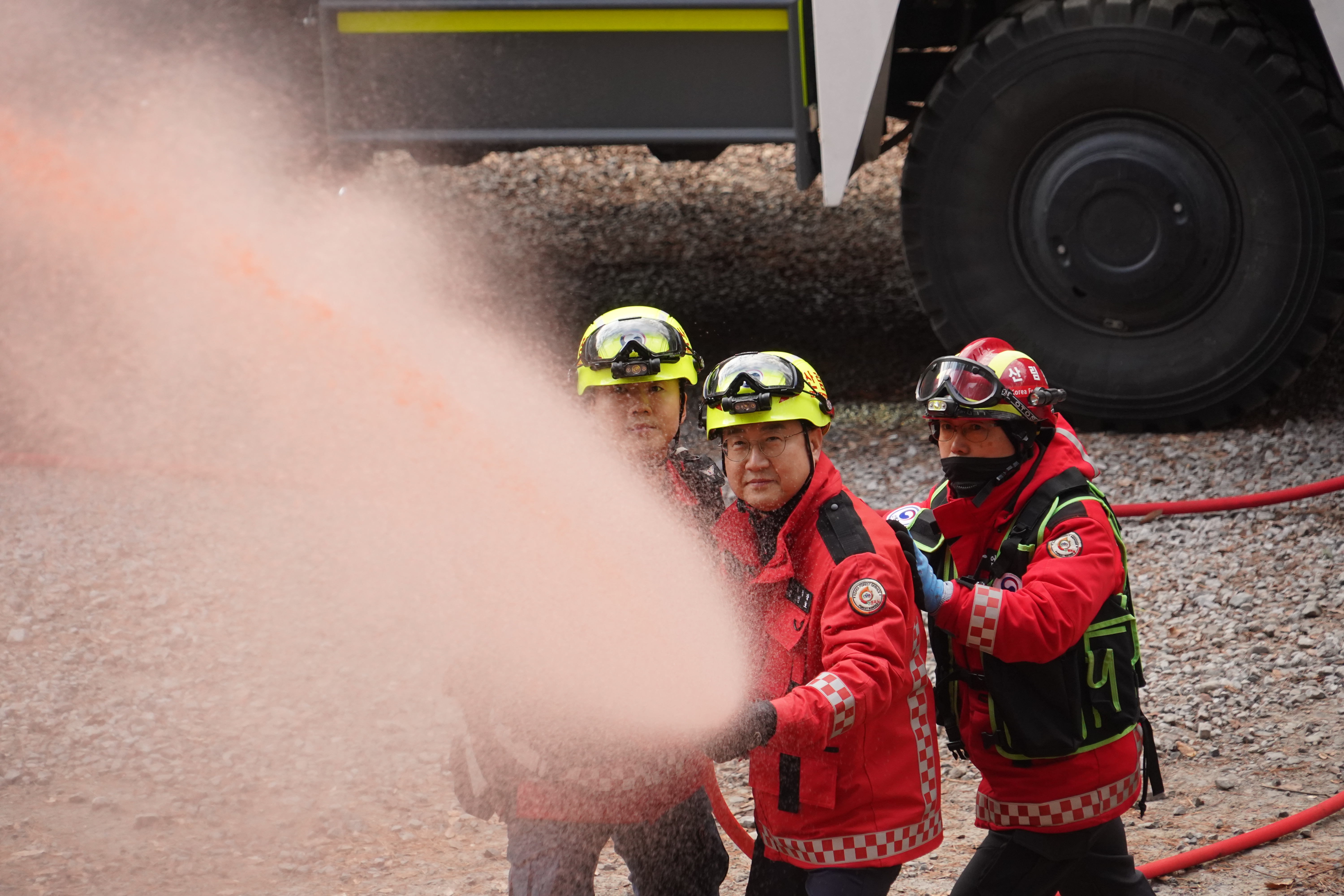 김인호 산림청장이 2026년 2월 11일 강원도 영월군 영월읍에서 진행된 세계문화유산보호를 위한 '산불재난 대응 합동 훈련'에 참여하고 있다.